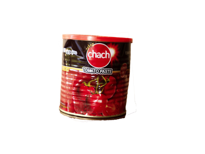 A concentrated product made from ripe tomatoes that have been cooked for several hours to reduce moisture, resulting in a thick, rich paste.