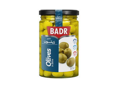 Badr Olives in Brine (Normal Pitted) are a type of olives preserved in a saltwater solution, known as brine.